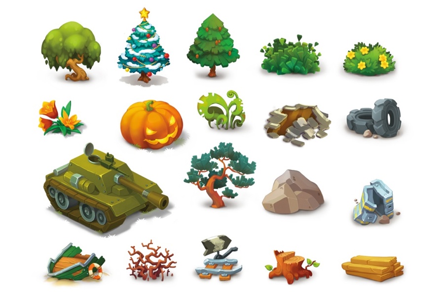 We work with different styles: casual, realism, comics, fantasy, sci-fi, etc. We can either work with specific art style of a given project, or create a unique style for it. We are available for creating: